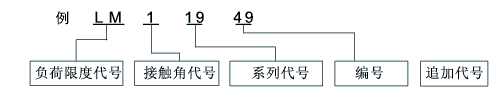 ISO355所規(guī)定的公制系列的圓錐滾子軸承中, 有不依據(jù)以往所使用的3xx尺寸系列的新尺寸。其中一部分記載于尺寸表。外圈寬度、外圈滾道的小端面直徑及接觸角與ISO的規(guī)定一致、內(nèi)圈組件和外圈均具有*際互換性。其型號(hào)不同于以往的公制系列,構(gòu)成如下。